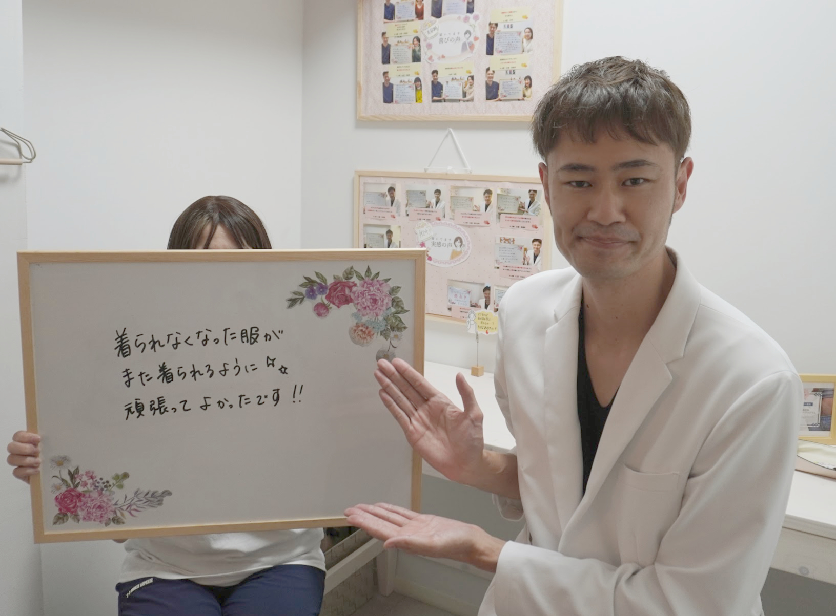 ありがたいです。ダイエットも1人でするとストレスになっていたと思いますが、先生のフォローのお陰で全くストレスを感じる事なく出来ました。オシャレの幅が広がりそうです。